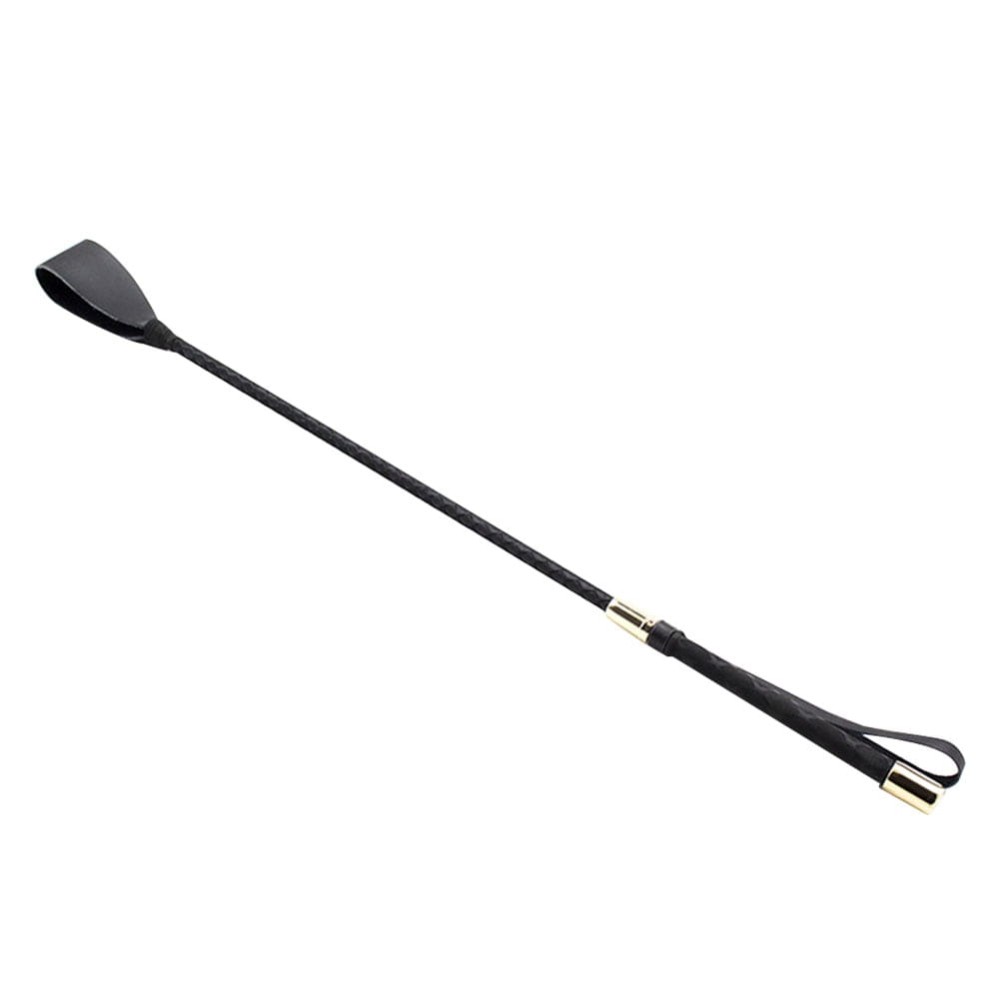 Klasyczny bat skokowy, elegancki wygląd, z gładkim uchwytem ze sztucznej skóry z aluminiową końcówką w kolorze złotym.