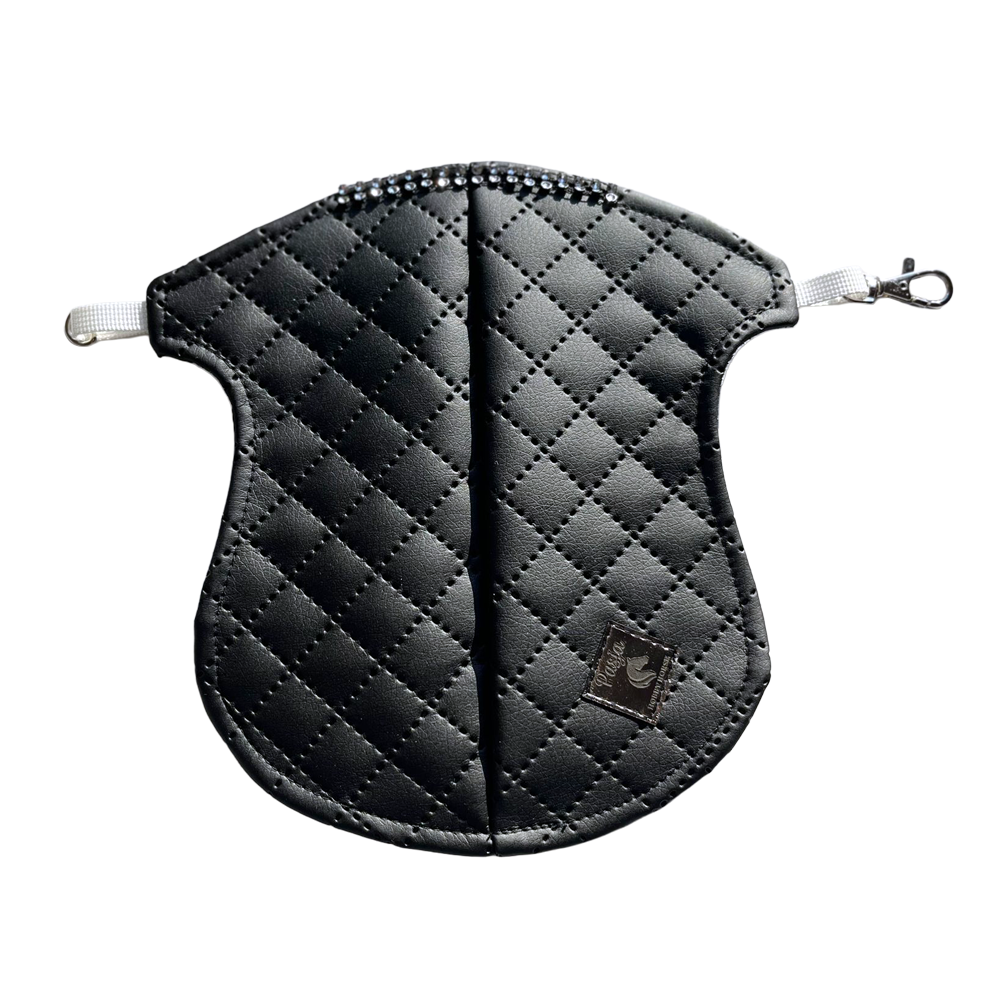Derka wykonana z czarnego pikowanego materiału ekoskóry , podszyta bawełnianym materiałem. Elementem ozdobnym derki jest pasek z cyrkonii.