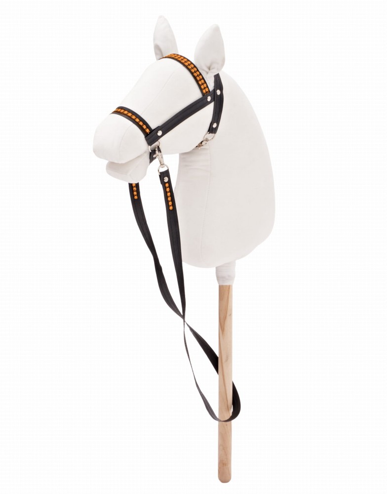 Ogłowie regulowane wykonane z taśmy z ekoskóry w komplecie z wodzami, ozdobione miedzianymi cyrkoniami.