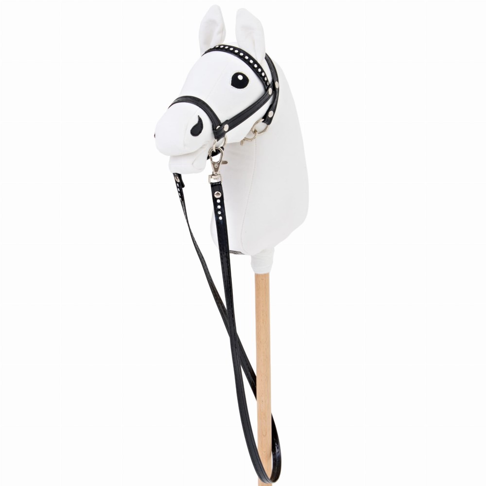 Ogłowie regulowane wykonane z taśmy o szerokości 10 mm z ekoskóry lakierowanej w komplecie z wodzami, ozdobione czarno-srebrnymi cyrkoniami.