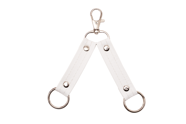 Wytok wykonany z ecoskórki koloru białego. Wykończony metalowymi, srebrnymi elementami.