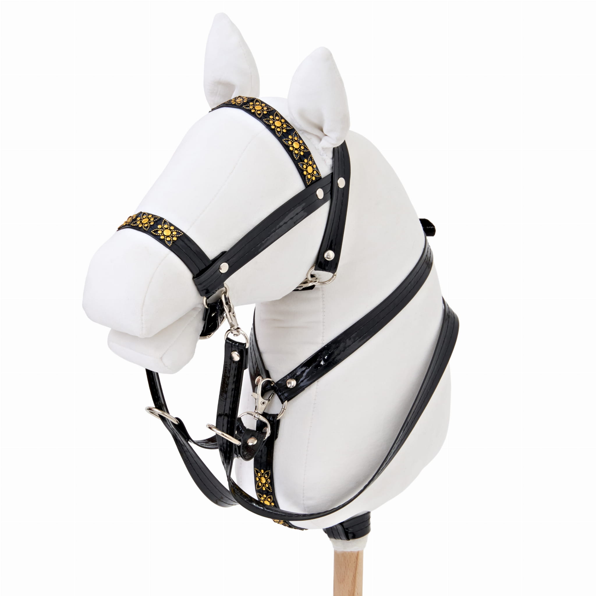 Wytok wykonany z ecoskórki koloru czarnego - lakirowane. Wykończony metalowymi, srebrnymi elementami.