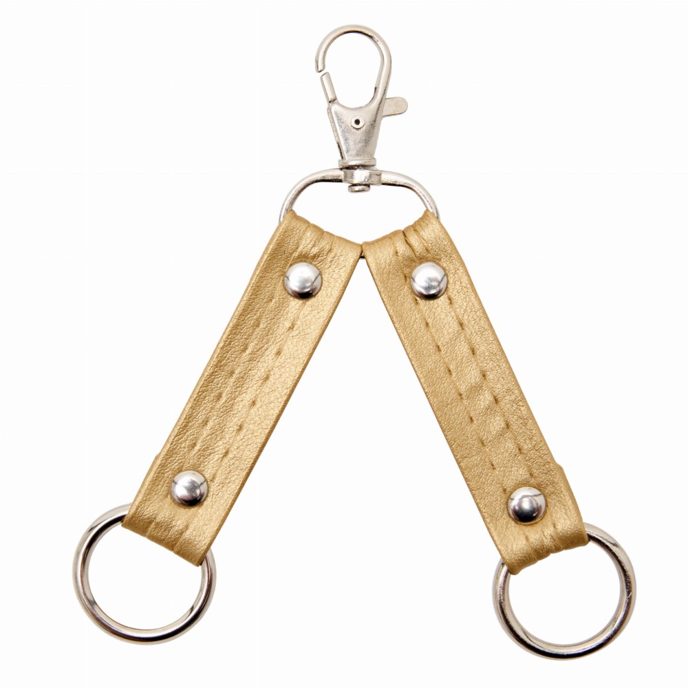 Wytok wykonany z ecoskórki koloru złotego. Wykończony metalowymi, srebrnymi elementami.
